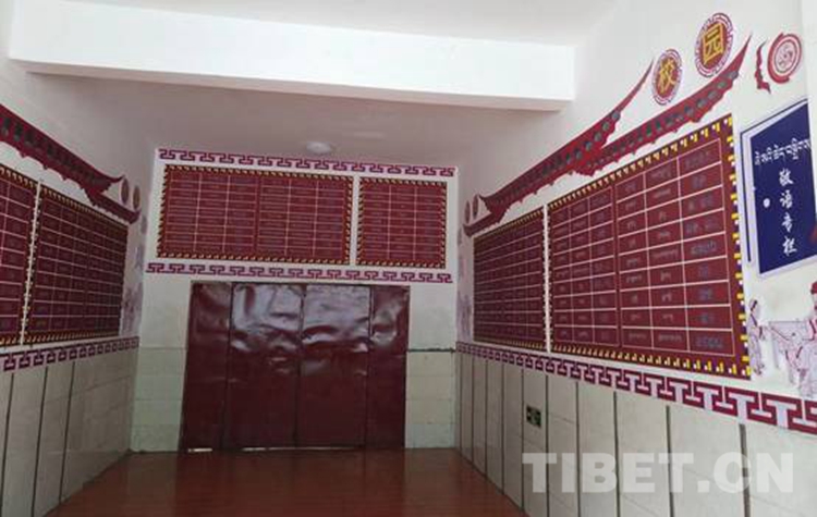 圖為西藏自治區(qū)那曲市比如縣羊秀鄉(xiāng)小學(xué)為了幫助孩子們隨時(shí)隨地學(xué)好藏語敬語,精心布置了敬語專欄 攝影:米瑪旺久