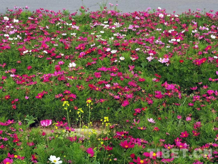 圖為在西藏海拔4700米處草原上盛開的波斯菊等野花(2022年7月攝) 攝影:彭萍