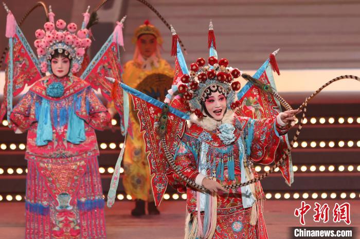 9月10日晚,2024江蘇中秋戲曲晚會在江蘇廣電荔枝大劇院上演,晚會緊扣“中秋”和“戲曲”兩大元素,將傳統(tǒng)節(jié)日內(nèi)涵與戲曲藝術(shù)融為一體,戲曲界各劇種名家陳少云、趙志剛、竺小招、周東亮、李奕潔、陳澄、李曉旭、施夏明等“梅花獎”“紫金文化獎?wù)隆薄拔娜A表演獎”獲得者輪番登臺,與近年來涌現(xiàn)出的優(yōu)秀青年演員同臺演出,凸顯戲曲文化的傳承與創(chuàng)新,為觀眾帶來一個流光溢彩的戲曲之夜。圖為“梅花獎”得主許亞玲(右)表演淮海戲《樊梨花點兵》選段。 中新社記者 泱波 攝