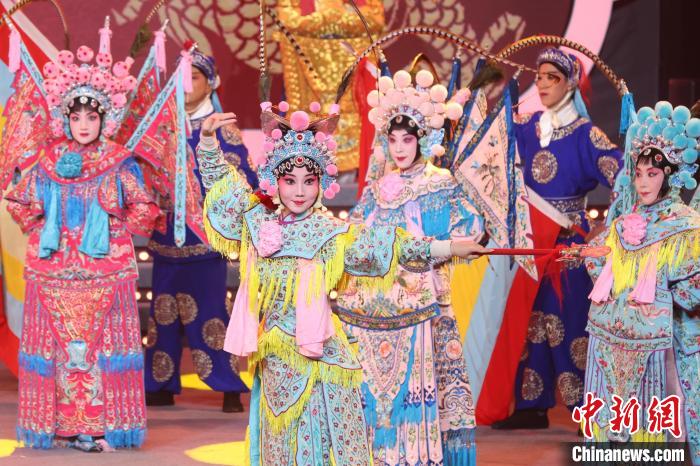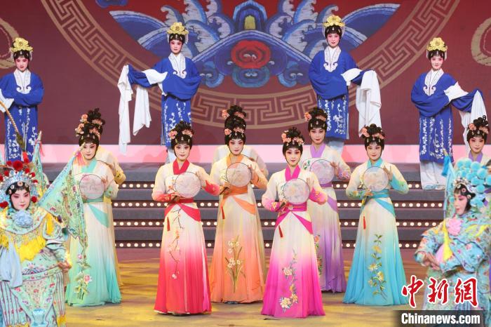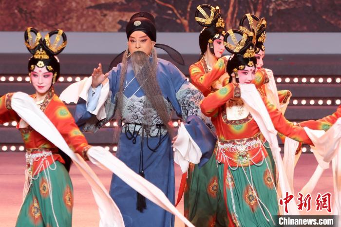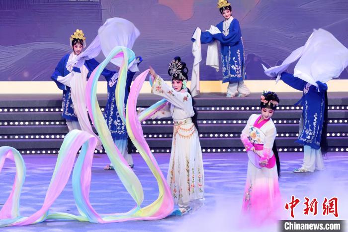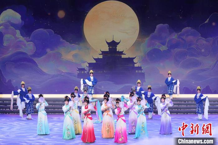 9月10日晚,2024江蘇中秋戲曲晚會在江蘇廣電荔枝大劇院上演,晚會緊扣“中秋”和“戲曲”兩大元素,將傳統(tǒng)節(jié)日內(nèi)涵與戲曲藝術(shù)融為一體,戲曲界各劇種名家陳少云、趙志剛、竺小招、周東亮、李奕潔、陳澄、李曉旭、施夏明等“梅花獎”“紫金文化獎?wù)隆薄拔娜A表演獎”獲得者輪番登臺,與近年來涌現(xiàn)出的優(yōu)秀青年演員同臺演出,凸顯戲曲文化的傳承與創(chuàng)新,為觀眾帶來一個流光溢彩的戲曲之夜。圖為戲曲演員們在舞臺上表演節(jié)目。中新社記者 泱波 攝