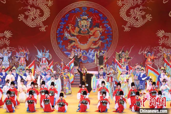 9月10日晚,2024江蘇中秋戲曲晚會在江蘇廣電荔枝大劇院上演,晚會緊扣“中秋”和“戲曲”兩大元素,將傳統(tǒng)節(jié)日內(nèi)涵與戲曲藝術(shù)融為一體,戲曲界各劇種名家陳少云、趙志剛、竺小招、周東亮、李奕潔、陳澄、李曉旭、施夏明等“梅花獎”“紫金文化獎?wù)隆薄拔娜A表演獎”獲得者輪番登臺,與近年來涌現(xiàn)出的優(yōu)秀青年演員同臺演出,凸顯戲曲文化的傳承與創(chuàng)新,為觀眾帶來一個流光溢彩的戲曲之夜。圖為學(xué)習(xí)戲曲的小戲迷登臺表演節(jié)目。中新社記者 泱波 攝