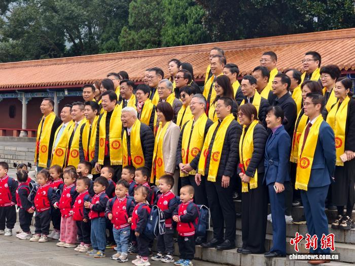2025年10月28日,200余名海峽兩岸同胞在湖南省永州市寧遠(yuǎn)縣九嶷山瑤族鄉(xiāng)舜帝陵,參加“祭舜帝 傳仁心 旺天下”乙巳年旺旺集團(tuán)祭祀舜帝典禮,共祭中華民族的人文始祖舜帝。圖為參與祭祀的部分嘉賓合影。中新社記者 胡默達(dá) 攝