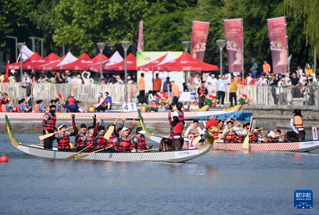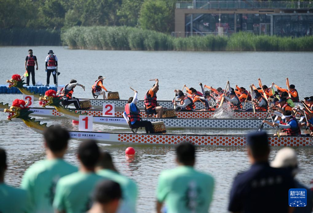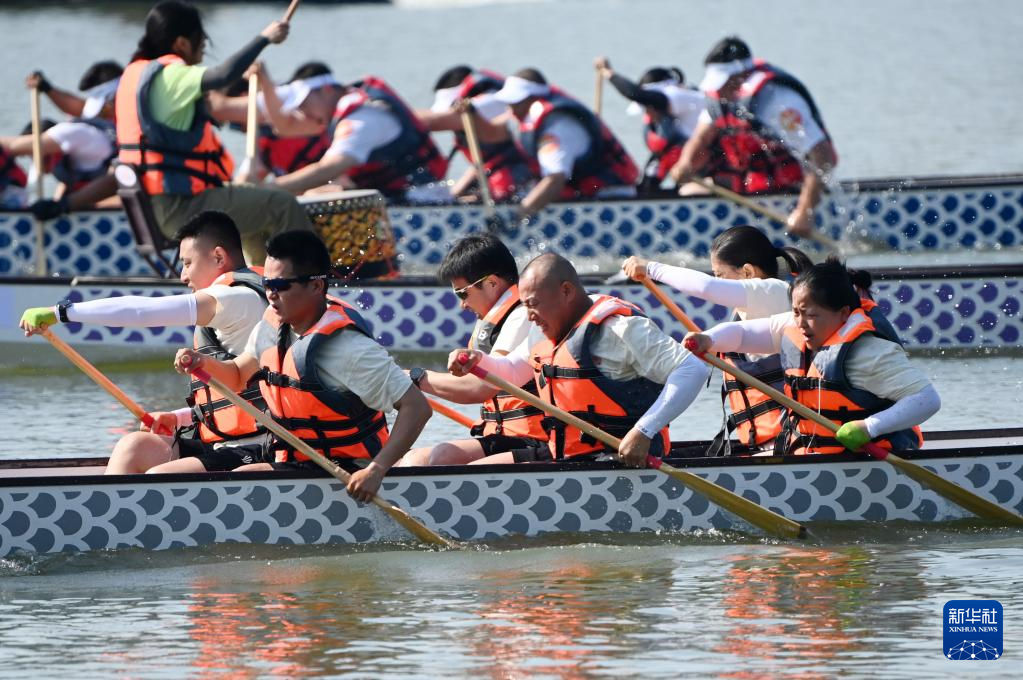 當(dāng)日,2025年天津港保稅區(qū)龍舟大賽在天津空港經(jīng)濟(jì)區(qū)西湖舉行,轄區(qū)內(nèi)的20支企事業(yè)單位代表隊(duì)同臺競技,奮楫競渡,迎接端午節(jié)的到來。