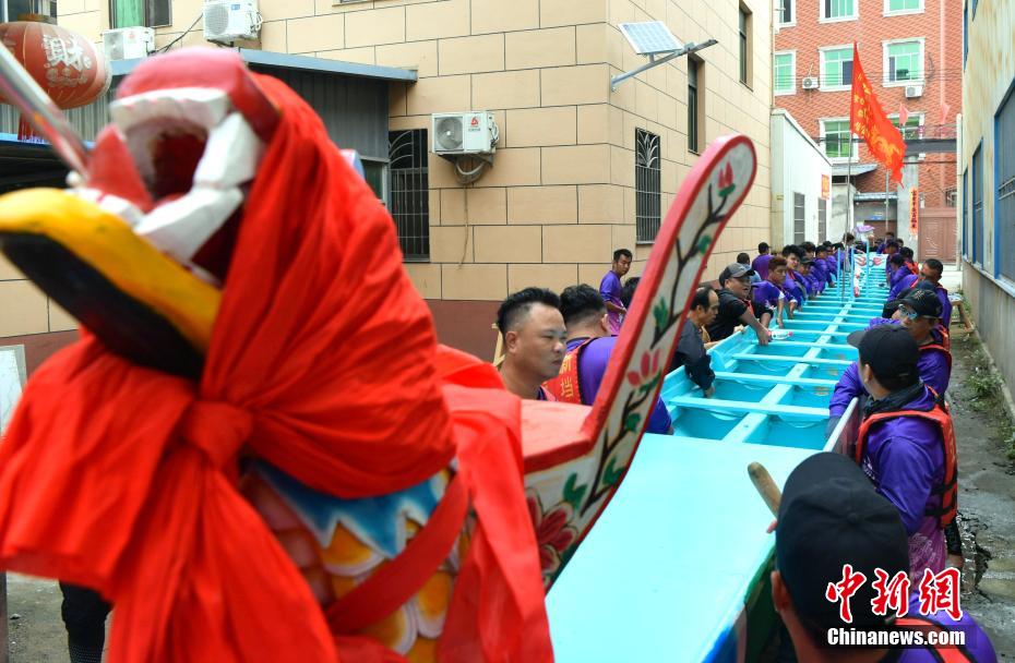 “世界龍舟看中國(guó),中國(guó)龍舟看福州,福州龍舟看方莊。”位于福建省福州市閩侯縣的方莊村,是中國(guó)最大的龍舟制造村,有著七百多年制作龍舟的歷史。隨著端午節(jié)臨近,方莊村內(nèi)的龍舟制造廠里,工匠們正加班加點(diǎn)趕制端午節(jié)的龍舟訂單。據(jù)統(tǒng)計(jì),目前該村每年能接到超過(guò)200艘龍舟的訂單,總產(chǎn)值約600萬(wàn)元人民幣。圖為5月25日,福州倉(cāng)山螺洲鎮(zhèn)的村民在方莊村迎接訂制的龍舟回村。中新社記者 張斌 攝