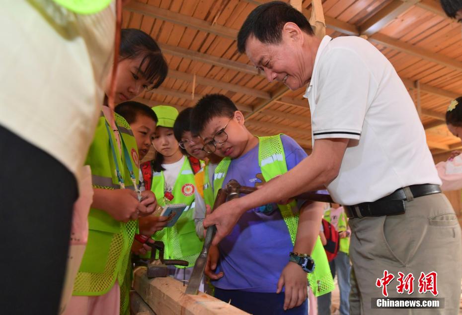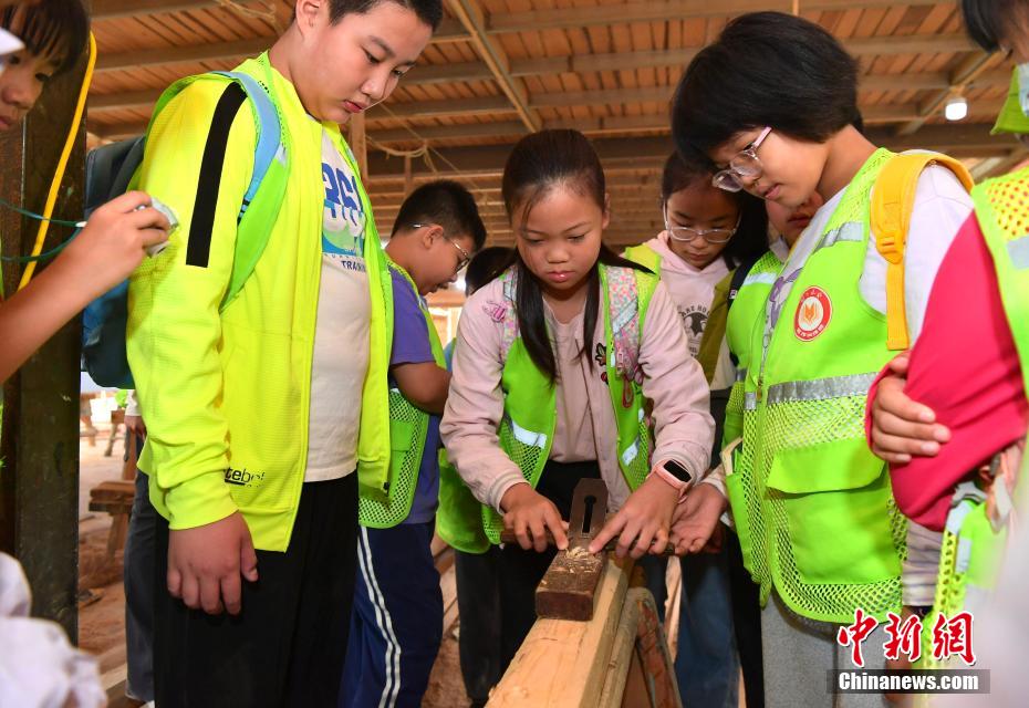 “世界龍舟看中國(guó),中國(guó)龍舟看福州,福州龍舟看方莊?!蔽挥诟=ㄊ「V菔虚}侯縣的方莊村,是中國(guó)最大的龍舟制造村,有著七百多年制作龍舟的歷史。隨著端午節(jié)臨近,方莊村內(nèi)的龍舟制造廠里,工匠們正加班加點(diǎn)趕制端午節(jié)的龍舟訂單。據(jù)統(tǒng)計(jì),目前該村每年能接到超過(guò)200艘龍舟的訂單,總產(chǎn)值約600萬(wàn)元人民幣。圖為5月25日,在方莊村的“龍舟世家”方忠雄龍舟廠里,前來(lái)參觀的小學(xué)生在體驗(yàn)傳統(tǒng)龍舟的制作工藝。中新社記者 張斌 攝