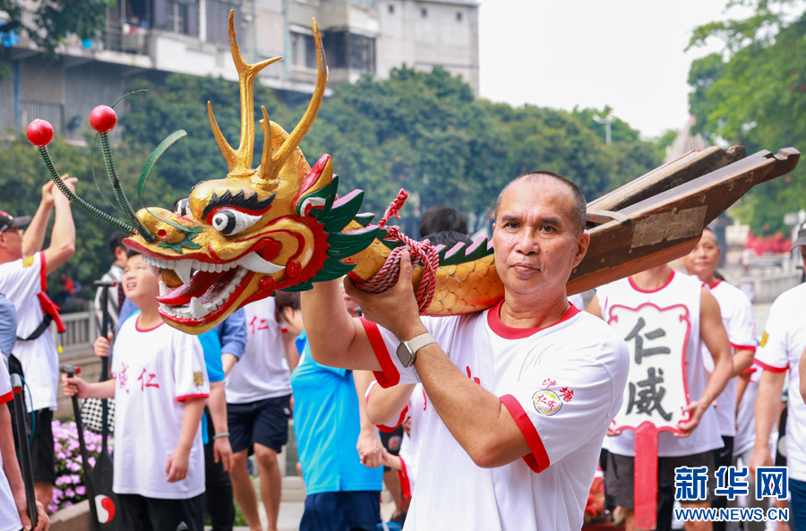 端午前夕,廣州市荔灣區(qū)泮塘村舉行傳統(tǒng)“起龍”儀式。新華網(wǎng)發(fā)(張朝竣 攝)