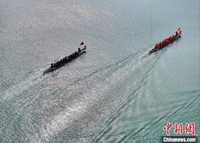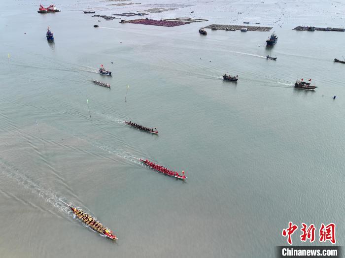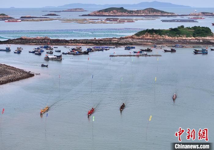 5月27日,福建省連江縣定海村舉行海上龍舟賽活動,迎接即將到來的端午節(jié)。(無人機(jī)照片)中新社記者 張斌 攝