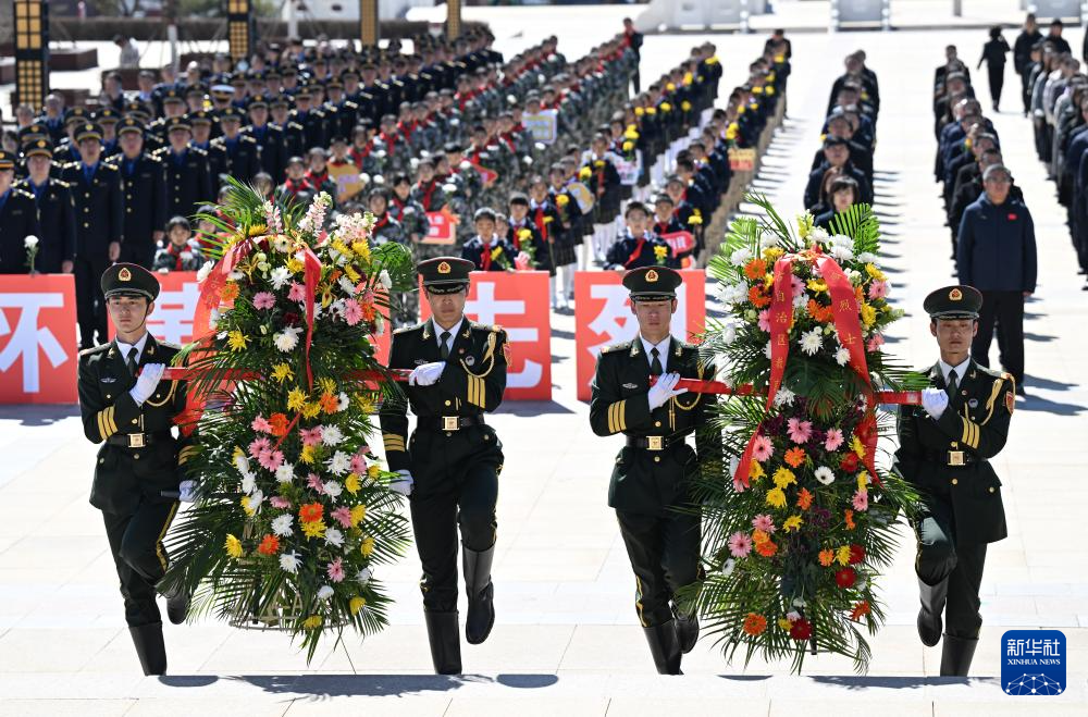 4月2日,人們?cè)趦?nèi)蒙古呼和浩特市大青山紅色文化公園向人民英雄紀(jì)念碑敬獻(xiàn)鮮花。