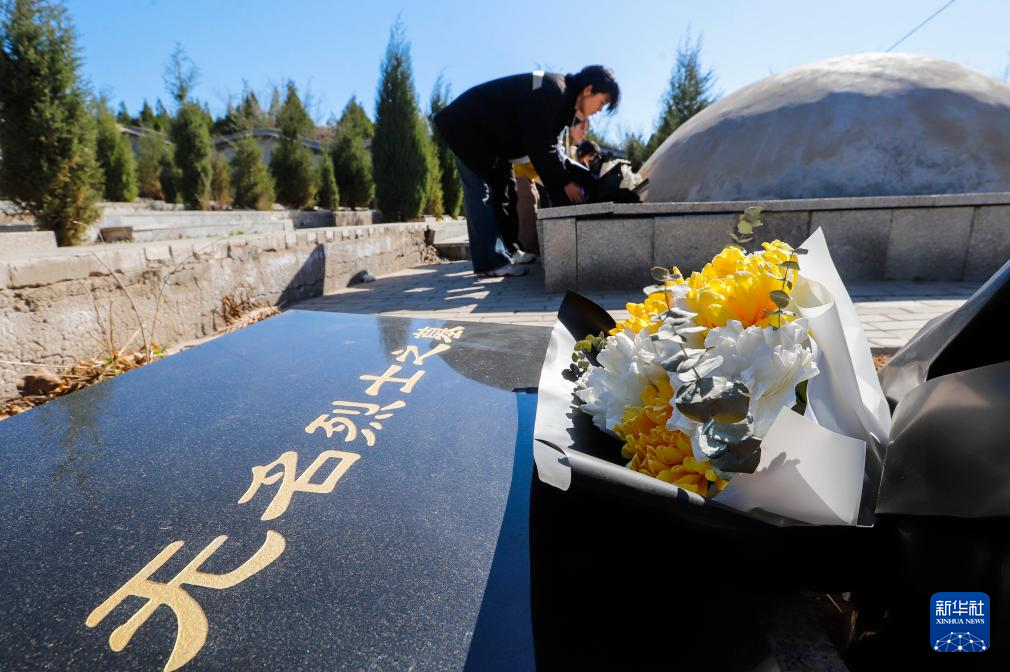 4月2日,河北省遵化市地北頭鎮(zhèn)群眾在魯家峪烈士陵園向無名烈士墓獻(xiàn)花。