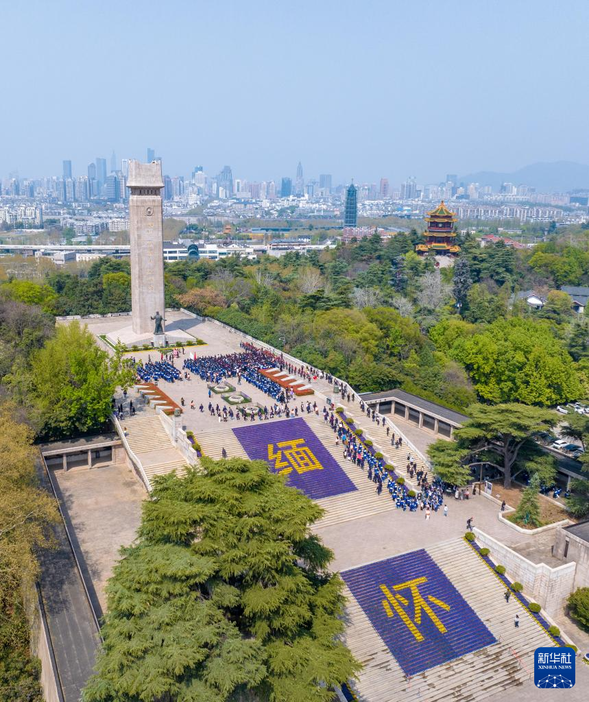 4月2日,各界人士在江蘇南京雨花臺(tái)烈士陵園緬懷先烈(無人機(jī)照片)。