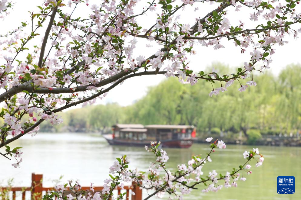 4月2日,游人在江蘇揚(yáng)州瘦西湖風(fēng)景區(qū)踏春賞景(無人機(jī)照片)。