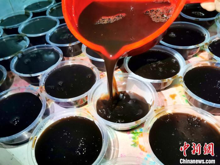 眼下,正是在臺(tái)山民間有“大暑小暑,有米懶煮”一說的大熱天,也正值當(dāng)?shù)劁N售茯苓膏的旺季。除了觀音亭茯苓膏店之外,還有不少糖水店、小食店、老牌作坊、生草藥檔推出精制的小桶裝茯苓膏供顧客購買。