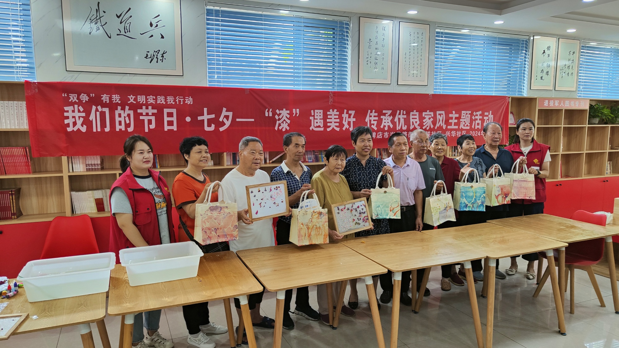 在中鐵社區(qū)群眾活動中心,工作人員為居民介紹了漆包和古法造紙術(shù)的技藝特點,并指導(dǎo)大家親手體驗制作。