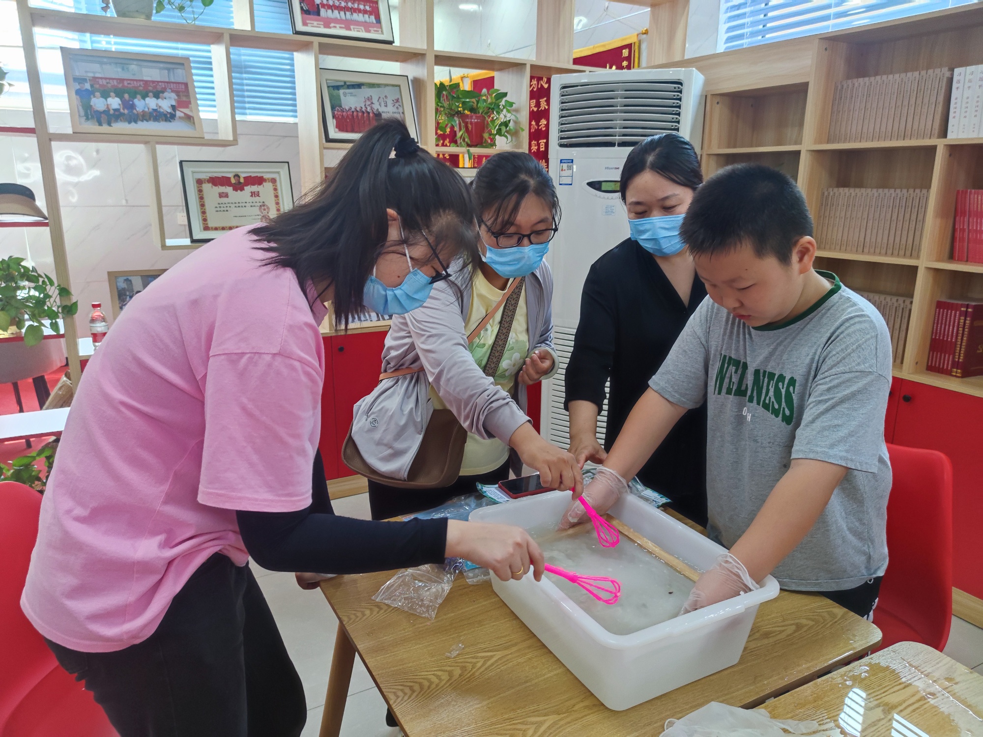 社區(qū)居民體驗古法造紙技藝(王梓涵 攝)