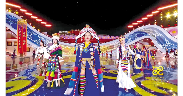 圖為演員展示西藏服飾。(總臺(tái)元宵晚會(huì)截圖)