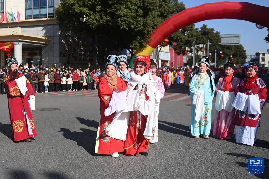 2月8日,鄉(xiāng)村戲劇隊在南潯區(qū)和孚鎮(zhèn)街區(qū)表演。