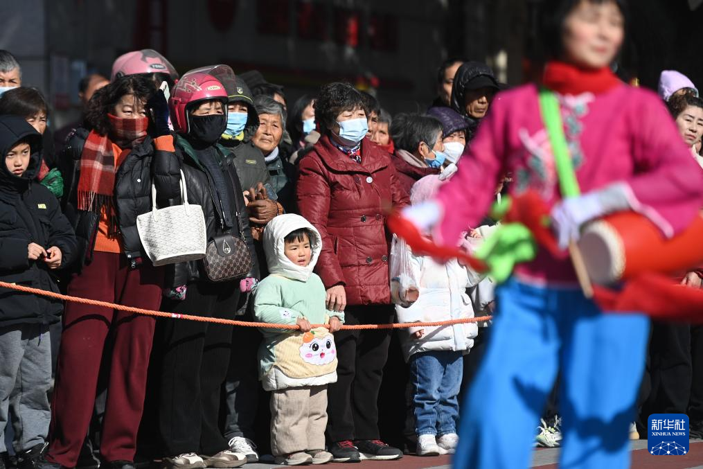 2月8日,觀眾在南潯區(qū)和孚鎮(zhèn)街區(qū)觀看腰鼓隊表演。