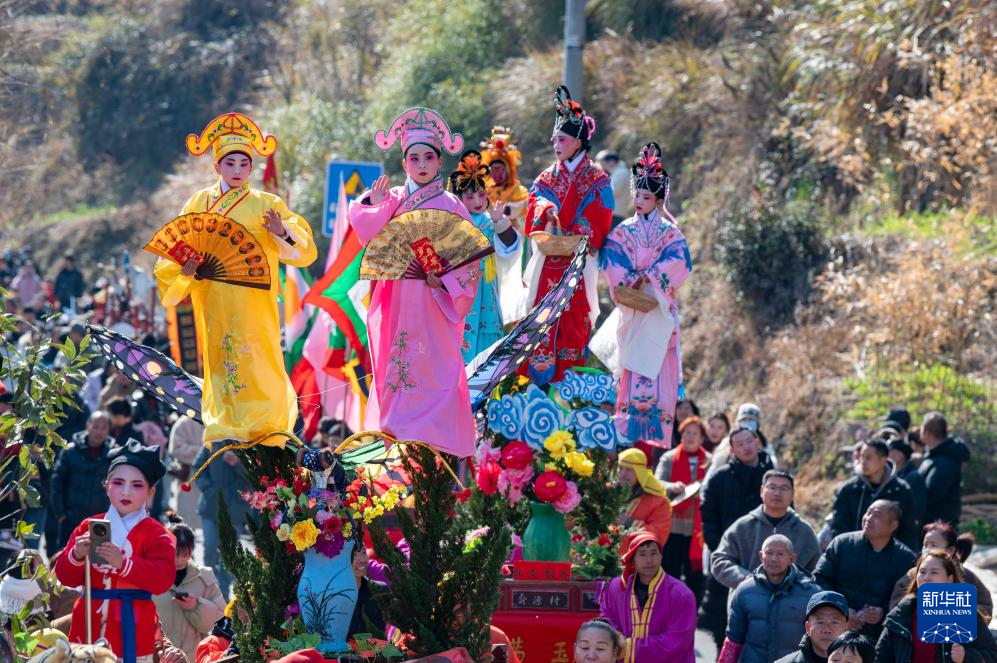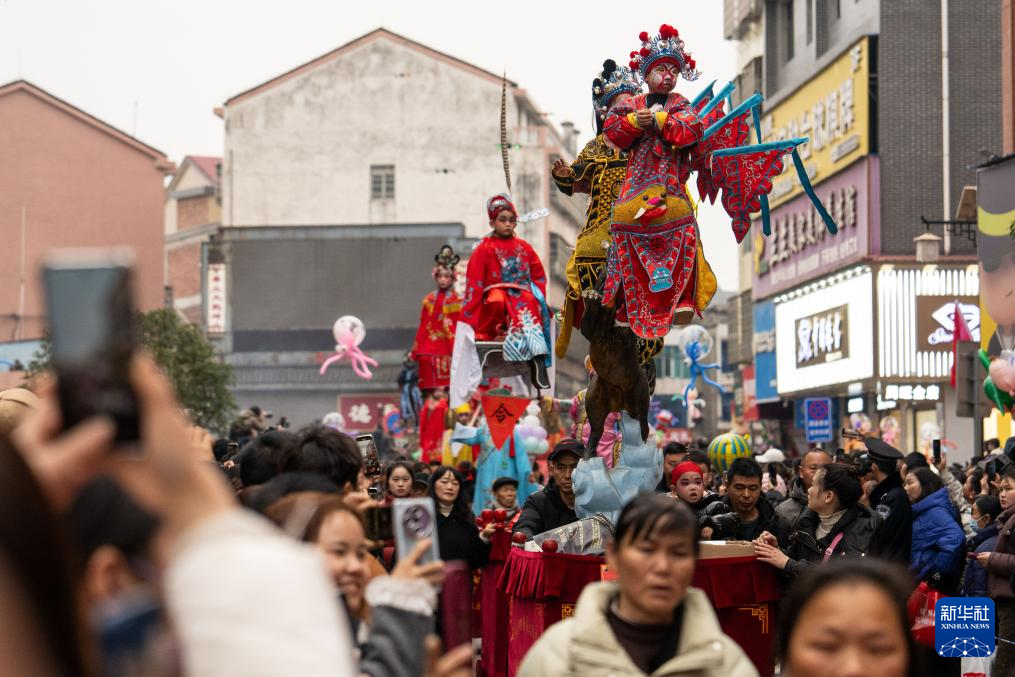 2月11日,在湖南省汨羅市長樂鎮(zhèn),人們參加抬閣故事會(huì)。“長樂抬閣故事會(huì)”是長樂鎮(zhèn)當(dāng)?shù)匾豁?xiàng)傳承千年的元宵節(jié)民俗活動(dòng),2011年入選國家級(jí)非物質(zhì)文化遺產(chǎn)擴(kuò)展項(xiàng)目名錄。