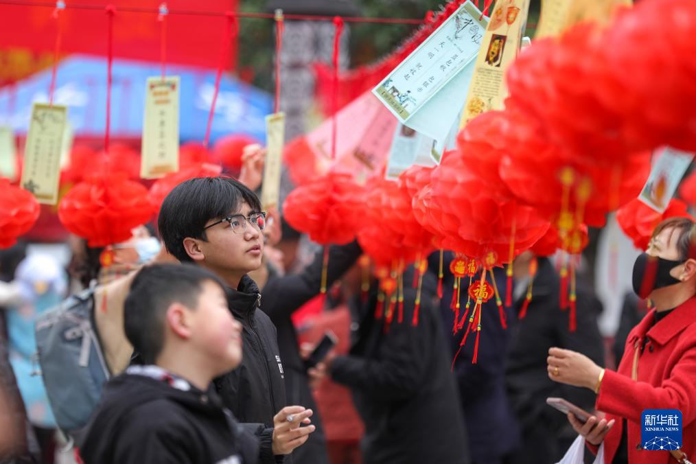 2月11日,湖南省衡陽市衡陽縣在明翰廣場開展猜燈謎活動(dòng),吸引眾多市民參與。