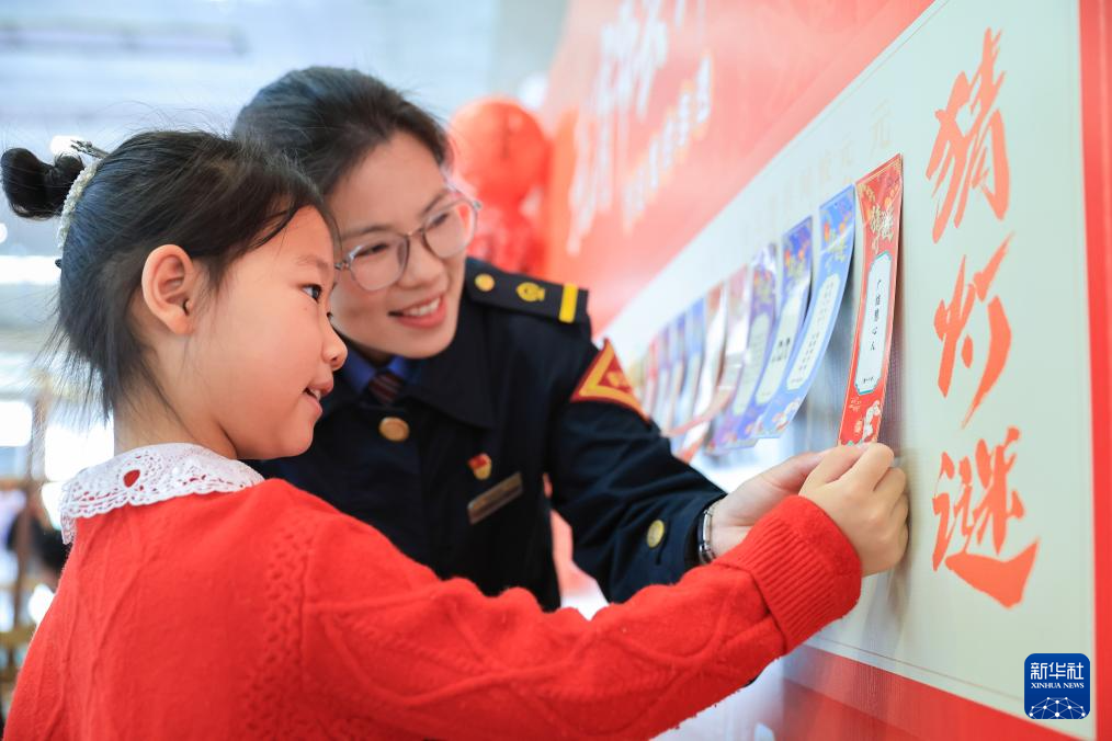 2月11日,孩子們在江西鷹潭北站猜燈謎。