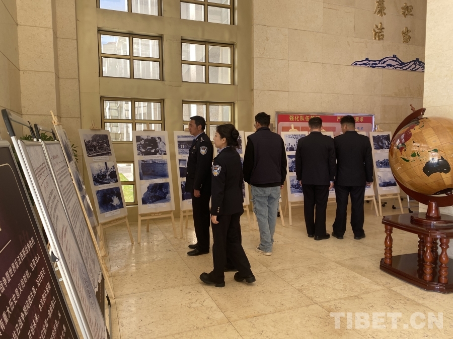圖為吉隆海關緝私分局組織民警參觀主題圖片展 攝影:肖富貴