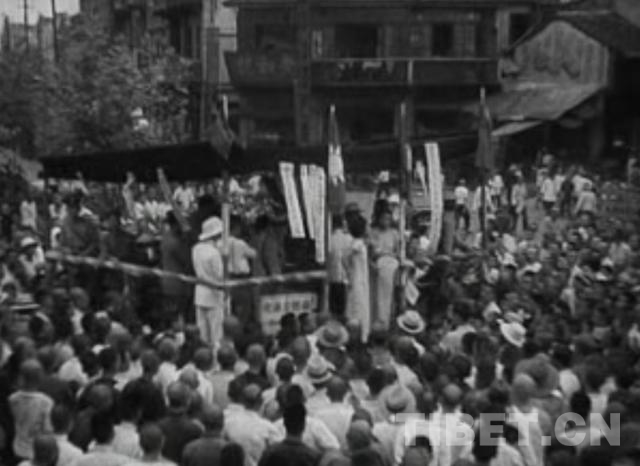 圖為伊文思拍攝的紀錄片《四萬萬人民》中記錄的武漢各界人士紛紛參與獻金的場面 圖片來源于湖北日報