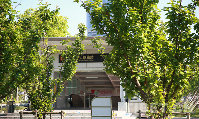 圖為跑道公園綠色掩映著的地鐵口。攝影:楊月云