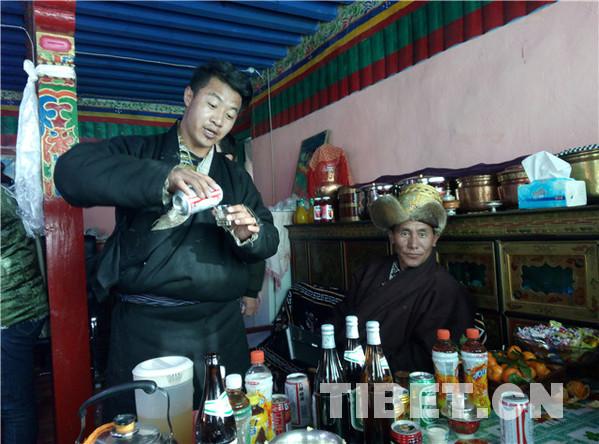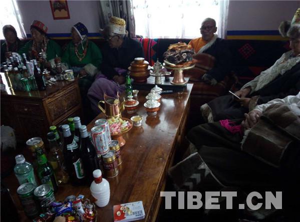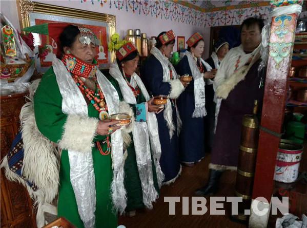 據(jù)了解,在藏歷十月三十白天,婦女們給孩子和自己洗發(fā),準備過年的材料,如釀制青稞酒、制作油炸果子等。晚上10點左右,家中派出男性,舉行驅(qū)鬼儀式。大年初一的上午,全村的男人們騎上駿馬,到村落的山神處祭祀,更換經(jīng)幡,誦經(jīng)祈福。各家各戶回家后就在家中聚會,一般是不出去的,個別時候,家中派出兩三個青年男女手持青稞酒和酒碗,端著切瑪盒,切瑪盒內(nèi)裝有青稞、糌粑、五彩的吉祥草,帶上青稞酒,到隔壁鄰居或親戚家拜年,見面后,互相祝福吉祥,敬獻青稞酒,各自抓起對方切瑪盒內(nèi)的青稞粒拋向空中,摔三下,祭拜天、地、神,祈禱新年吉祥如意。