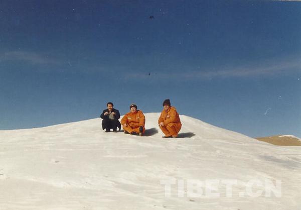 圖為2004年12月20日,劉爭(zhēng)平(中)和同事在唐古拉山。