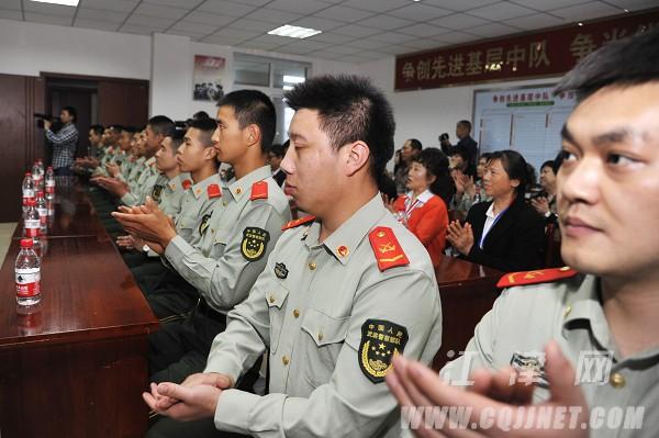 4月24日,“帥鄉(xiāng)兵媽媽”陳麗萍等6名市級(jí)勞模走進(jìn)武警江津中隊(duì),與武警官兵共話軍民魚(yú)水深情。市級(jí)勞模李立衡還以《抗震精神與人生觀》為題,為武警官兵講述了自己親歷的“5·12”汶川地震救援中的感人事跡,并以習(xí)近平總書(shū)記“弘揚(yáng)抗震精神,為實(shí)現(xiàn)中國(guó)夢(mèng)注入強(qiáng)大動(dòng)力”勉勵(lì)武警官兵。記者 李皓 實(shí)習(xí)記者 汪坤玉 攝