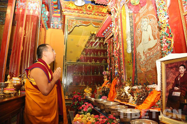圖為十一世班禪朝拜珍珠唐卡殿。攝影:達娃