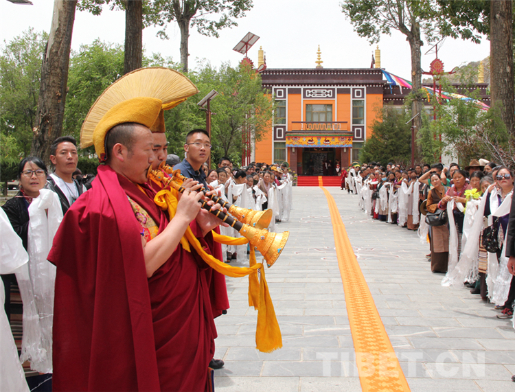 來(lái)自拉薩的僧眾代表和信教群眾代表,帶著虔誠(chéng)和喜悅的心情,滿懷期待十一世班禪的到來(lái)。當(dāng)大院內(nèi)響起法號(hào)聲時(shí),早已在此等候的僧俗信教群眾紛紛翹首踮足,一睹十一世班禪的風(fēng)采。