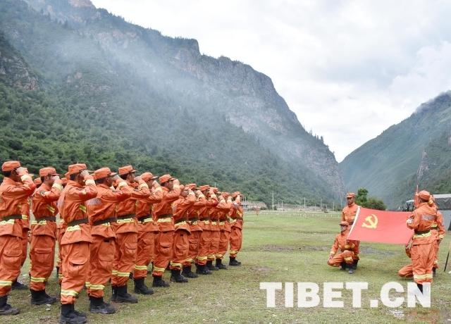 圖為官兵們重溫入黨誓詞,始終做到與黨中央保持高度一致。