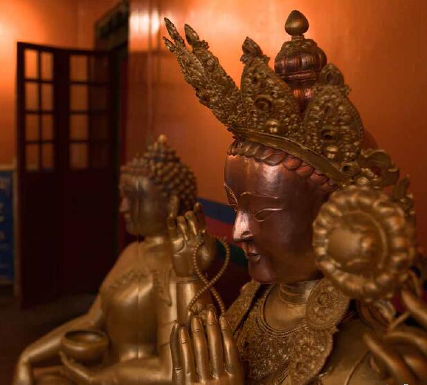 “雪堆白”金銅佛像鑄造材料特別,制作奢華。用黃金裝飾寺廟樓閣不是西藏的發(fā)明,但把這種風(fēng)尚完美地繼承下來并推上歷史頂峰,在今天富裕的物質(zhì)世界里仍放射璀璨的光彩,贏得世界喝彩的只有西藏。