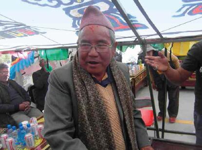 我遇見年逾古稀的尼泊爾商人孜曼的時候,他正悠閑地曬著太陽,頭戴一頂鴨舌帽,隱約露出黑白相間的頭發(fā),臉龐和雙手呈現(xiàn)出經(jīng)年高原陽光曬烤之后的古銅透紅色,鼻梁上常年架著一副舊式老花眼鏡,身著一件厚舊方格狀敞懷呢料西裝,左手中指、無名指各帶兩個碩大鑲嵌紅藍寶石的金戒指。