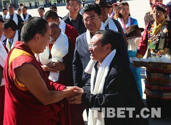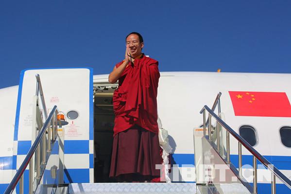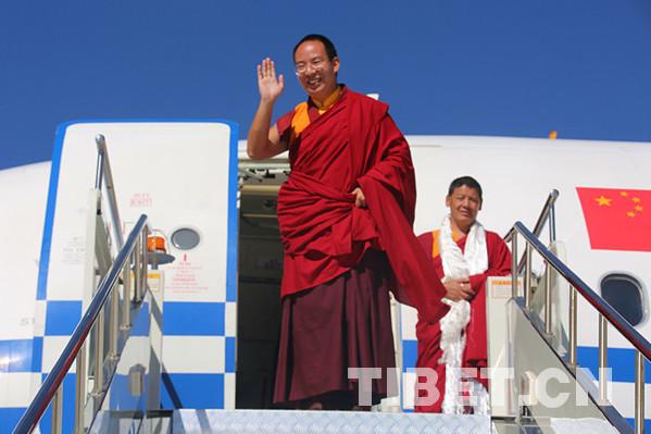 在中央統(tǒng)戰(zhàn)部和西藏自治區(qū)黨委、政府的高度重視和關(guān)心下,十一世班禪今年7月25日圓滿結(jié)束青海省調(diào)研和佛事活動后,在拉薩、日喀則、昌都開展各項(xiàng)走訪調(diào)研和佛事活動,圓滿順利。圖為十一世班禪向大家揮手告別。攝影:王淑。