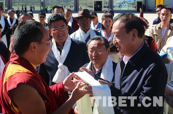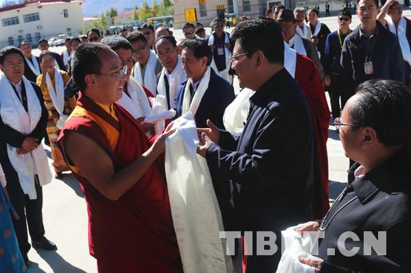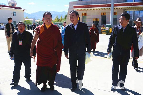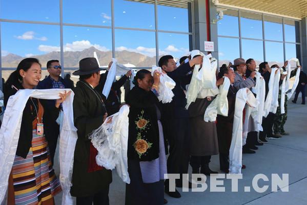 西藏自治區(qū)黨委常委、統(tǒng)戰(zhàn)部部長旦科,西藏自治區(qū)政府黨組副書記格桑次仁,西藏自治區(qū)政府副主席、日喀則市委書記張延清等領(lǐng)導(dǎo)前往機(jī)場送行。攝影:王淑。