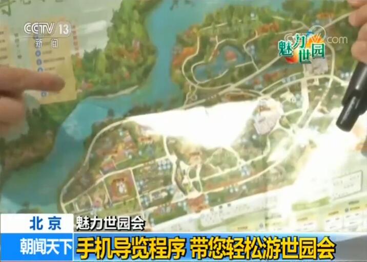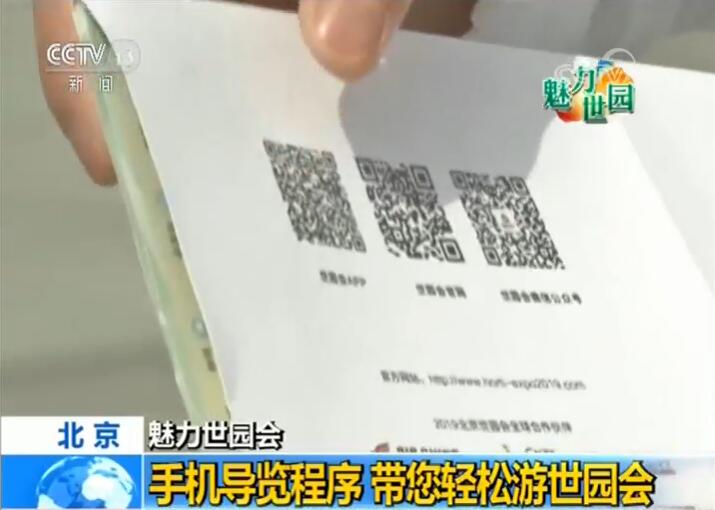 央視記者 張偉澤:每一位進入到園區(qū)的游客都可以領(lǐng)到這么一份導(dǎo)覽圖。導(dǎo)覽圖上標了很多信息,每一個景點,以及所有電瓶車的位置、餐飲點,還有醫(yī)療點,都在這上面有標注。在它的背面還有咱們世園會官方APP,只要用手機掃描這個APP,就可以很輕松地通過手機來游園。