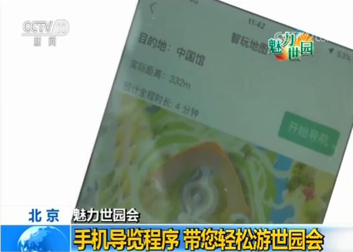 央視記者 張偉澤:這個智玩地圖,我們現(xiàn)在比如說去中國館,這里有個導(dǎo)航 現(xiàn)在顯示中國館離我有332米,4分鐘就能到達,我們現(xiàn)在開始導(dǎo)航,跟著導(dǎo)航去尋找中國館。