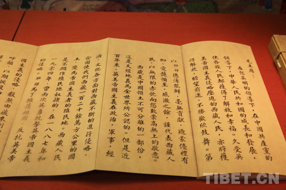 • U020190125330167267702.jpg圖為十世班禪額爾德尼敬獻(xiàn)毛主席的獻(xiàn)詞,民族文化宮博物館藏。
