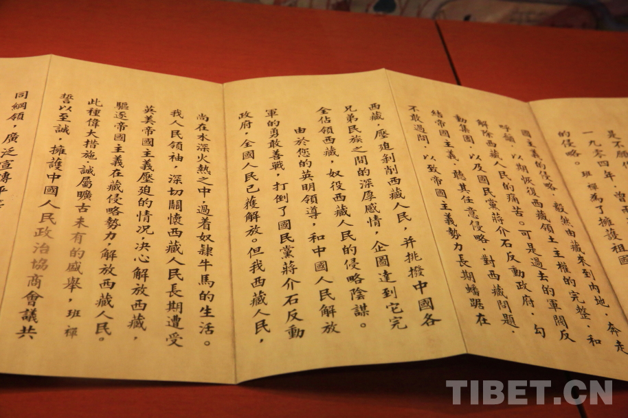 • 圖為十世班禪額爾德尼敬獻(xiàn)毛主席的獻(xiàn)詞,民族文化宮博物館藏。