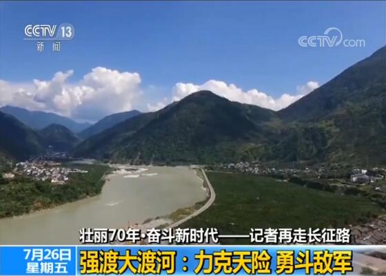央視記者 閆乃之:這里就是紅軍強(qiáng)渡大渡河時(shí)的渡口。當(dāng)年水面比現(xiàn)在更加寬闊、河水更加湍急。所以紅軍的船只從這里出發(fā)之后,在水流的沖擊之下只能向斜下方漂進(jìn)。但是在紅軍登陸的地點(diǎn),您看畫面中有幾棟房子的地方,就是國(guó)民黨軍隊(duì)部署火力的地方。紅軍一邊強(qiáng)渡天險(xiǎn),另一面要與敵軍作戰(zhàn)。