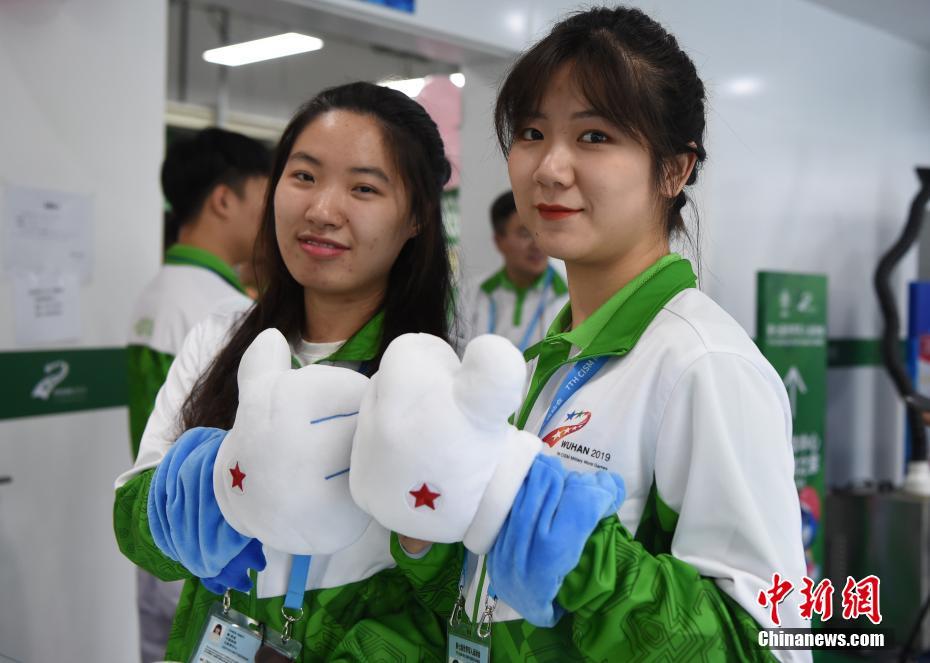 10月24日,幾位在第七屆世界軍人運(yùn)動(dòng)會(huì)舉辦期間迎來(lái)生日的志愿者“小水杉”在主媒體中心內(nèi)的“志愿者之家”過(guò)集體生日。圖為兩名志愿者帶著軍運(yùn)會(huì)吉祥物“兵兵”的手套合影。中新社記者 侯宇 攝
