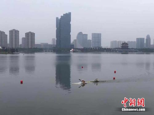 皮劃艇運動員在迪蕩湖上進(jìn)行練習(xí)。 冷昊陽 攝