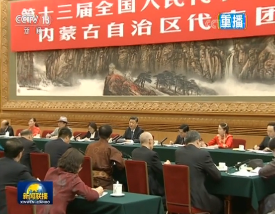 圖為3月5日,習(xí)近平參加內(nèi)蒙古代表團(tuán)審議。圖片來源:新聞聯(lián)播截圖