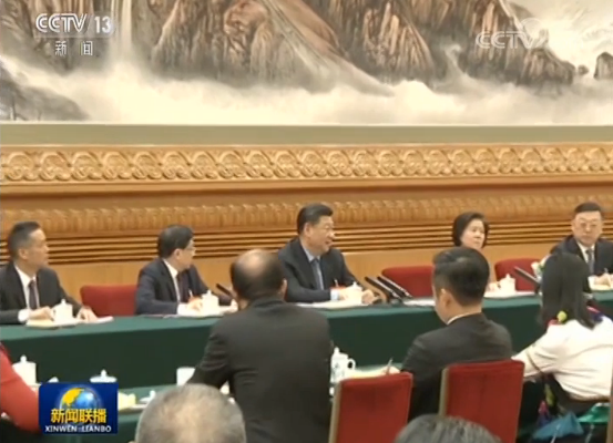 圖為3月4日,習(xí)近平看望參加全國政協(xié)十三屆二次會(huì)議的文化藝術(shù)界、社會(huì)科學(xué)界委員,并參加聯(lián)組會(huì),聽取意見和建議。圖片來源:新聞聯(lián)播截圖
