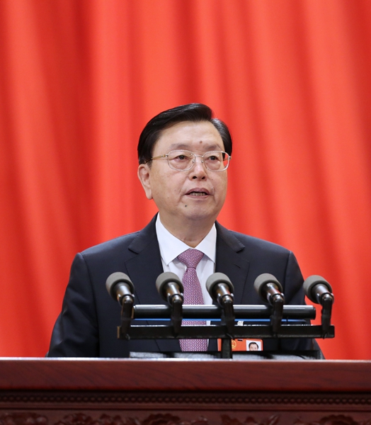 3月11日,十二屆全國人大常委會委員長張德江向十三屆全國人大一次會議作《全國人民代表大會常務(wù)委員會工作報告》。 新華社記者 姚大偉 攝