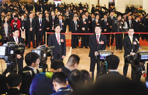3月15日,十三屆全國(guó)人大二次會(huì)議第三場(chǎng)“代表通道”集體采訪活動(dòng)舉行。