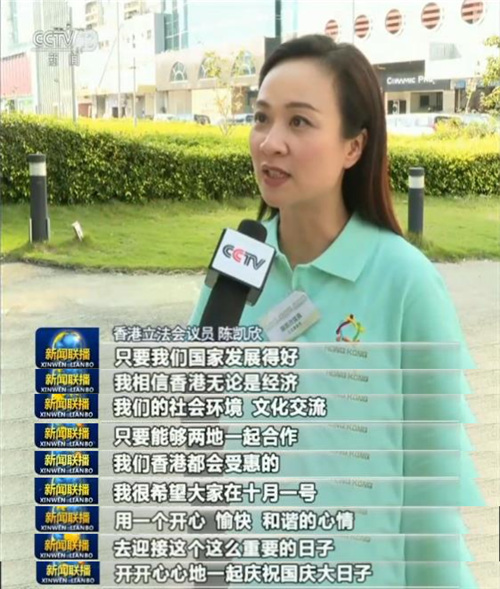 香港各界人士表示,國慶臨近,希望大家能夠同心共賀新中國成立70周年。他們表示,粵港澳大灣區(qū)給香港青年的發(fā)展提供了更廣闊的舞臺和空間,希望青年人能夠把握未來發(fā)展機遇。