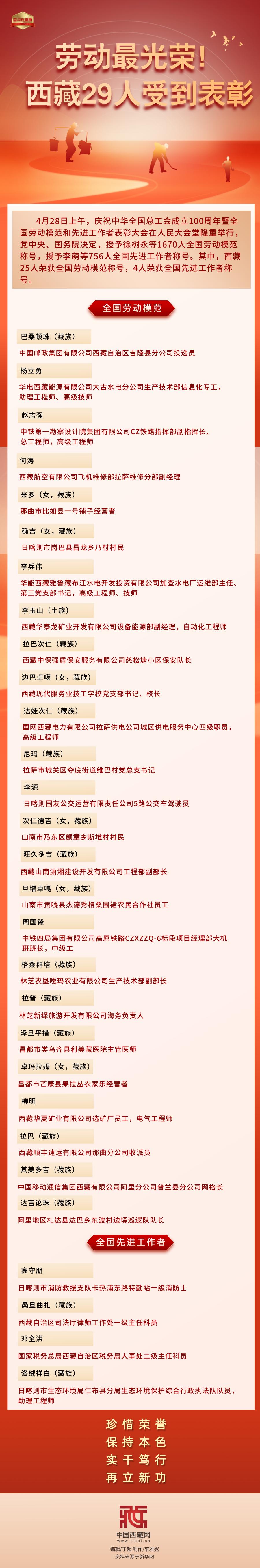 【奮斗在高原】勞動最光榮!西藏29人受到表彰